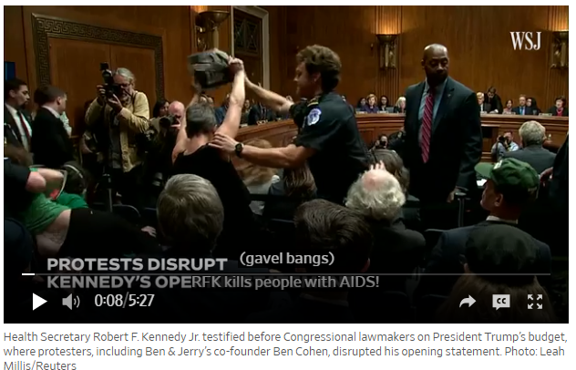 ケネディJr.の発表はすんなり行ったわけではありません。WSJの短いビデオを見ると、開会直後からワクチン支持派?の騒乱があったし、医療産業界の族議員らの非難をこめた質問(まともな答を求めているわけではない)が続いたようです。