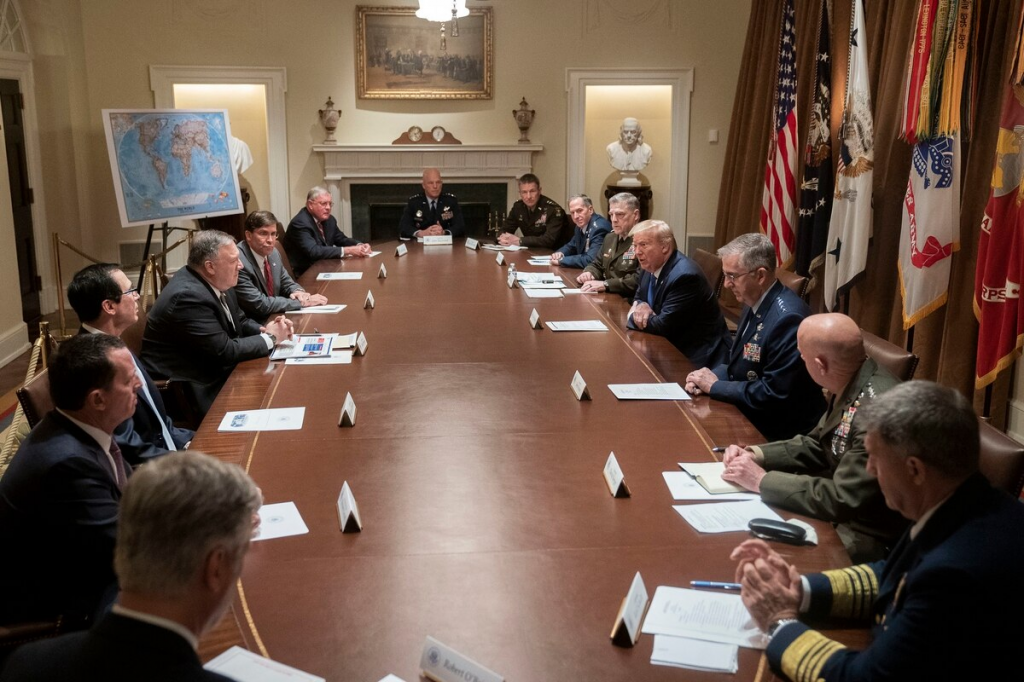 (5月8日、トランプ大統領と軍高官とのミーティング。ソーシャルディスタンスもマスク姿もないことに注意・・・彼らはちゃんとわかっているんだ!)